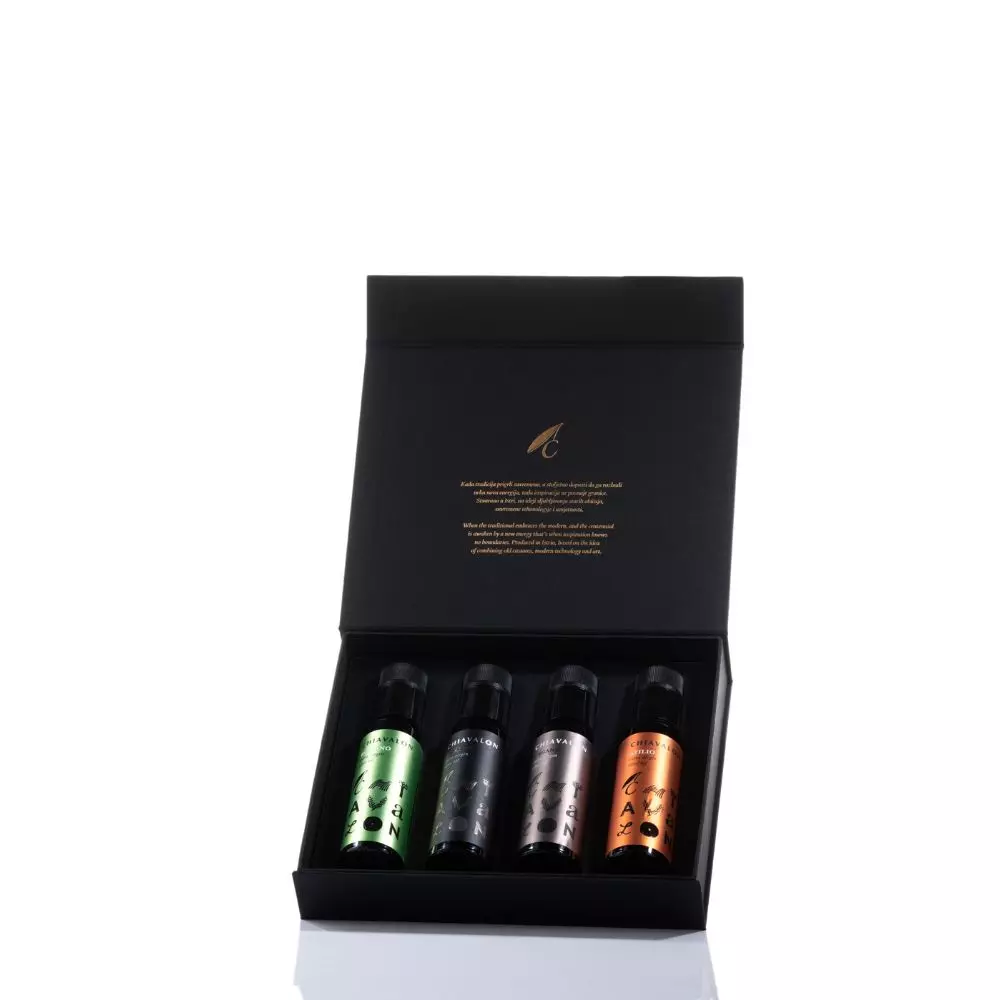 Eine Auswahl unserer Mischungen: ExAlbis, Organic, Romano und Atilio 4× 100 ml in einer exklusiven Geschenkpackung.